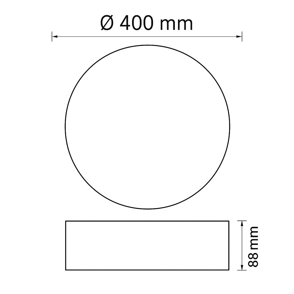 - Diameter 400 mm — groter oppervlak voor een ruimere en vollere lichtspreiding